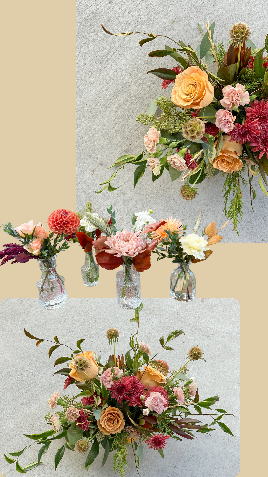Bring warmth, beauty, and a touch of harvest magic to your Thanksgiving table with a beautiful centerpiece! Featuring a mix of autumn hues and creamy neutrals, our flower arrangements are guaranteed to make your home feel welcoming for the holiday. Our offerings include three different sizes to fit any table, as well as a bud vase option to sprinkle down your Thanksgiving table.